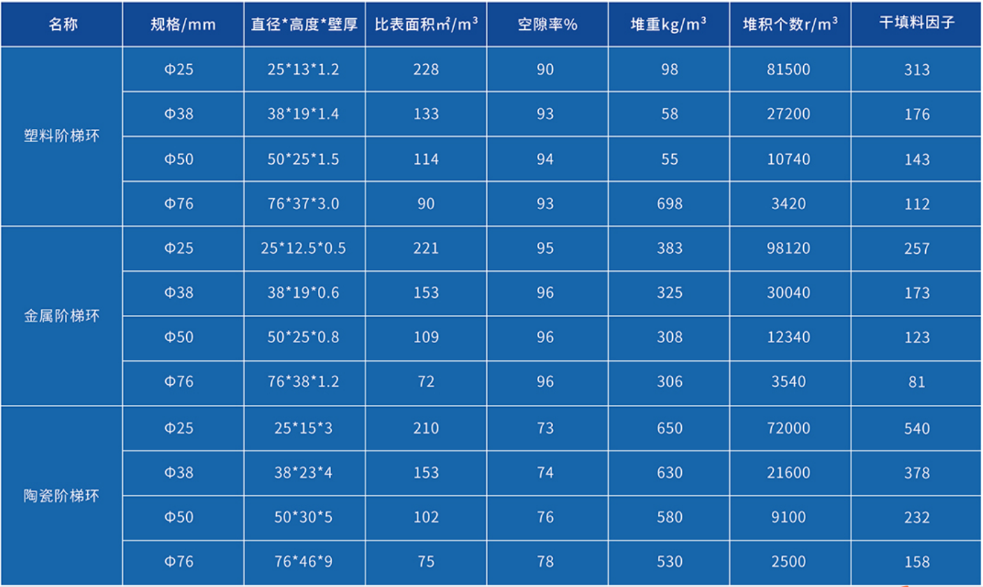 階梯環(huán)填料(CMR)是一種性能優(yōu)越的散堆填料,階梯環(huán)吸收了拉西環(huán)的特點(diǎn),而對(duì)鮑爾環(huán)的改進(jìn),環(huán)的高徑比為1:2,并在一端增加了錐形翻邊,減少了氣體通過床層的阻力,并增大了通